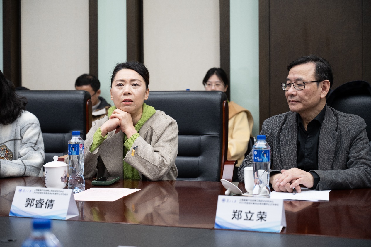 复旦大学融创院副院长郭睿倩教授代表管理单位复旦大学科研院致辞。她首先对与会专家在百忙之中指导工作表示感谢,对工程中心的定位、在面向国计民生的重要产品质量安全保障,以及中心代表复旦大学在该领域的创新使命的努力表示肯定,对中心过去一年取得的优异成绩表示祝贺,同时指出本次会议既是对过往工作成果的全面总结,更是对未来发展的展望。作为管理单位,学校将始终全力支持工程中心的各项工作推进与发展规划落地,切实做好服务保障,为中心高质量发展保驾护航。复旦大学未来信息创新学院徐丰副院长代表建设单位发言。他结合复旦大学在新工科领域的战略布局,指出工程中心的建设也是信息学院服务国家社会的重要使命和任务,恳切期望与会专家结合本领域的技术发展和产业需求给中心“诊断把脉”,同时对工程中心团队在技术转化和校企联动方面的努力和成效给予了充分肯定。